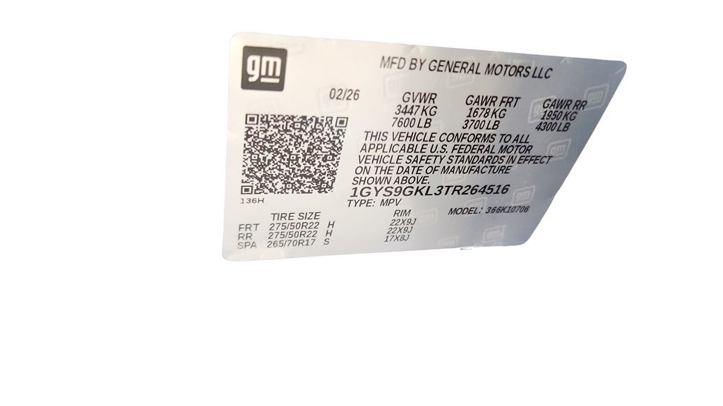 - Tires, 275/50R22SL all-season, blackwall (STD)