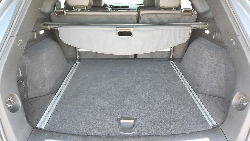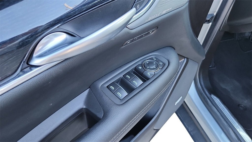 - Opens or closes when the system senses the key fob and the driver extends their foot under the left-hand side of the rear bumper over an image of the Cadillac Crest projected under the vehicle