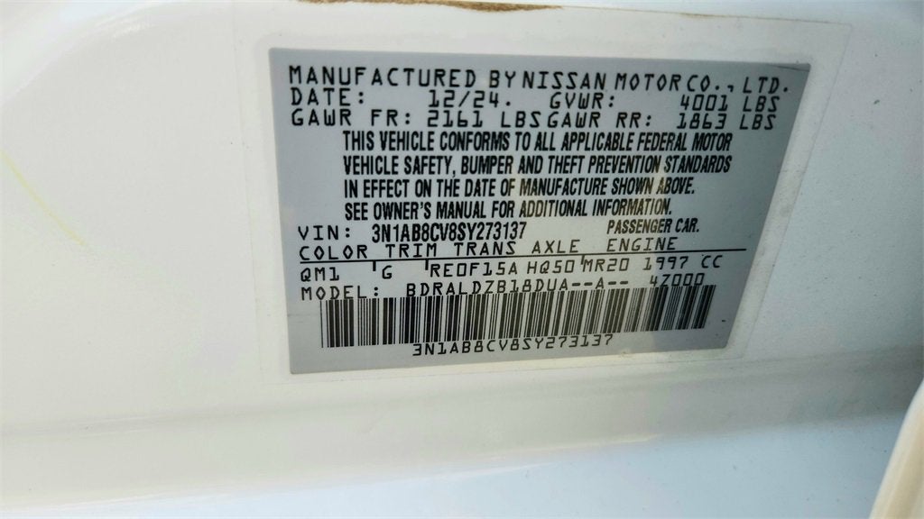 2025 Nissan Sentra 4D Sedan SV 2.0L I4 DOHC CVT with Xtronic FWD