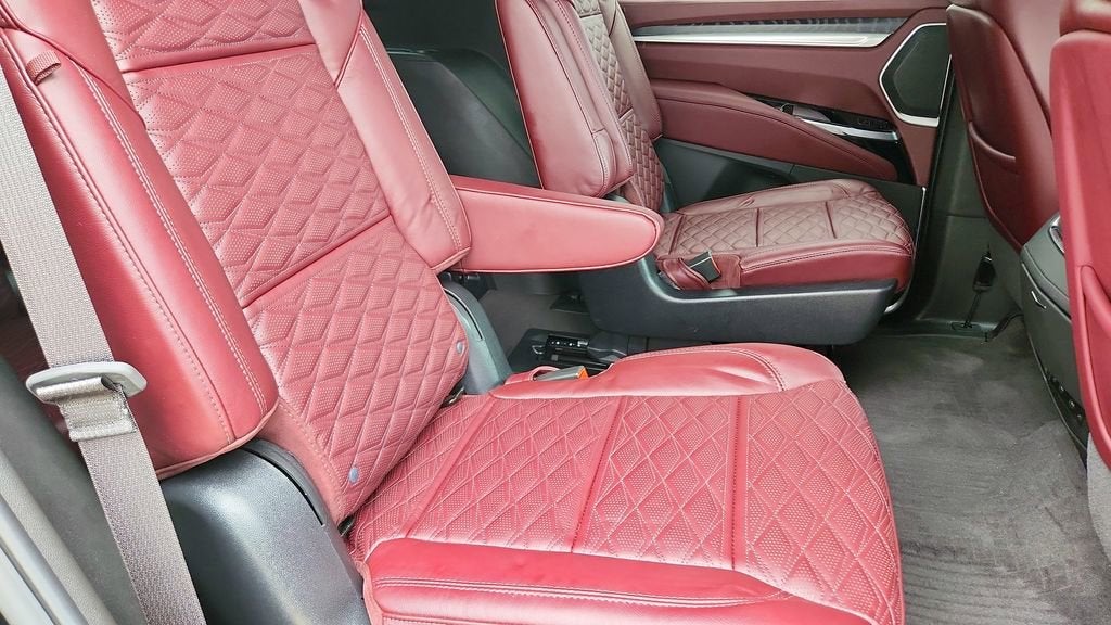 Indulge in the unmatched luxury and sophistication of the Renaissance Red with Jet Black Accents interior, complemented by the Anhinga Ash Open Pore wood trim and premium leather seating surfaces with faceted quilting. The Rear Seat Entertainment System, complete with dual 12.6-inch HD screens and Bluetooth® headphones, ensures your passengers remain entertained on every journey.